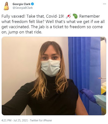Georgia Clark, who works for the Daily Telegraph, had a serious reaction after Pfizer. Like so many pro-jab folk, her bad experience seems only to have increased her fervour for this untested medical procedure.